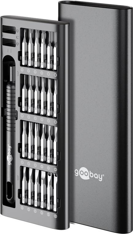 Tööriistakomplekt Advanced, 49-osaline tööriistad ja otsikukomplekt kruvimiseks, kokkupanekuks ja isetegemisprojektideksTegija töömees on valmis: See mitmekülgne tööriistakomplekt koos otsikuhoidja, otsikute, lõiketangide ja kruvikeerajatega on iga kodu hädavajalik abiline. Olgu tegemist mööbli kokkupaneku, piltide seinale riputamise, parandustööde või lampide paigaldusega – Goobay kompaktne tööriistakast aitab Sul igast olukorrast välja tulla.Omadused: Praktiline põhikomplekt igale isetegijale – sobib kõigiks kodusteks remonditöödeks ja mahub tänu kompaktsele formaadile igasse sahtlisse või tööriistakasti 1× kruvikeeraja ergonoomilise, kummist käepideme ja magnetilise otsikuhoidjaga standardotsikutele Komplektis 9 padrunit ja 32 löögikindlast S2-terasest otsikut: 8× lapik 12× ristpea (PH, PZ) 7× Torx (T) 5× kuuskant (H) 1× külglõiketangid kummist käepidemetega – sobivad juhtmete, kaablite, naelte ja jäänuste lõikamiseks ning juhtmete koorimiseks 1× nõelotsaga tangid kummist käepidemega – väikeste esemete kindlaks haaramiseks ja juhtmete lõikamiseks 4× magnetilist täppiskruvikeerajat (lapik ja ristpea) – ideaalsed parandustöödeks, täppisremondiks või kellassepa tööriistana Ideaalne kaasaskandmiseks: praktilises tööriistakastis läbipaistva kaanega, mis tagab hea ülevaate komplekti sisust
