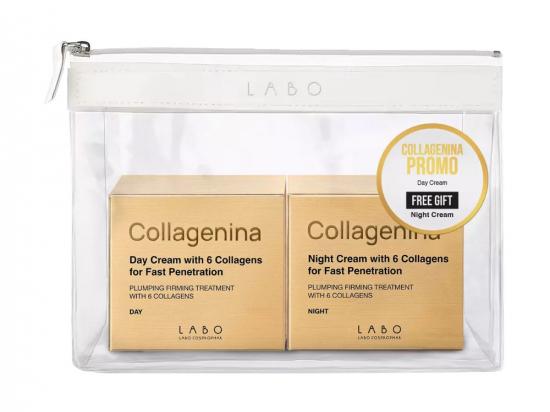 Collagenina, 6 eri molekulmassiga kollageeniga vananemisprotsesse aeglustav, nahka tihendav ja pinguldav ning naha kollageenitaset taastav päevakreem Aitab taastada näonaha kudede struktuuri – tugevdab, tihendab, pinguldab Muudab naha koheselt ühtlasemaks ja siledamaks, andes näole värske, elastse sära Ennetab naha äravajumist, lõdvenemist, õhenemist ja ahendab poore Mõnusalt kerge tekstuuriga, kiiresti imenduv Collagenina 6 eri molekulmassiga kollageeniga vananemisprotsesse aeglustav, nahka tihendav ja pinguldav ning naha kollageenitaset taastav öökreem Aitab taaselustada näonaha kudede struktuuri – tugevdab, tihendab, pinguldab Muudab naha koheselt ühtlasemaks ja siledamaks, andes näole värske, elastse sära Ennetab naha äravajumist, lõdvenemist, õhenemist ja ahendab poore Sametine ja rikkalik tänu väärtuslikke taimeõlisid sisaldavale väga pehmendavale baasile Hellitav, taastav öine hoolitsus, tänu millele saad näha ja tunda oma naha erilist puhanud värskust ja nooruslikku sära Lisaks 6 erineva molekulmassiga kollageenile sisaldab see komponente kollageeni pikaajaliseks nahasiseseks biosünteesiks ja glükatsioonivastaseks toimeks (karnosiin). Transdermaalne tehnoloogia koos 5 võimendajaga aitab kõigil Collagenina aktiivmolekulidel tungida kiirelt sügavale dermiseni (ex vivo test), kus nad täidavad oma spetsiifilisi funktsioone. Kliiniliselt tõestatud dermakosmeetilised preparaadid. Collagenina tooted sisaldavad merelist päritolu kollageeni, mis on tuntud oma parima biosaadavuse poolest. Kliinilis-instrumentaalne test*: NÄOKONTUURIDE REMODELLEERIMINE pärast 28 päeva: -1.158 mm kuni -3.130 mm (päevakreem)* Kliinilis-instrumentaalne test*: NAHA PAKSUS 28 päeva pärast: +15,4% kuni +27,7% (öökreem)* TASE 3 Sobivad kasutamiseks eraldi igapäevase kollageenihooldusena või pärast 14-päevast Collagenina intensiivhooldust, aidates pidevalt parandada naha toonust ja elastsust. Üks Collagenina põhiomadusi tugineb Labo patenteeritud transdermaalsel tehnoloogial (Šveitsi patent CH 711 466). Seda rakendatakse Collagenina kompleksi aktiivmolekulidele ja see võimaldab – tänu 5 võimendajale – kontrollida ja testida aktiivainete täpset kogust, mis läbistavad ja jõuavad nahakihtidesse, kus nad saavad täita oma spetsiifilist pinguldavat, täitvat ja tugevdavat funktsiooni. Labo teadlaste poolt väljatöötatud transdermaalne tehnoloogia on inspireeritud esteetilise meditsiini meetoditest ning on patenteeritud 2015. aastal. Labo on esimene firma, mis arendas süstivaba aktiivkoostisosade nahka läbistamistehnoloogia (läbi epidermise ja dermise). Funktsionaalsete aktiivmolekulide transdermaalne läbitungimisvõime lahuses pärast 24 tundi – testitud Franz Cells’i vahenditega 6 KOLLAGEENI Hüdrolüüsitud kollageen 2K Da 101,3% Kollageeni aminohapped 2.4K Da 75,9% Hüdrolüüsitud kollageen 4K Da 66,5% Hüdrolüüsitud kollageen 12K Da 95,5% Lahustuv kollageen 230K Da 90,5% Lahustuv kollageen 300K Da 74,6% TEISED AKTIIVAINED Glütsiin 75,9% Proliin 51,5% Hüdroksüproliin 69,5% Palmitoüül tripeptiid-5 91,1%