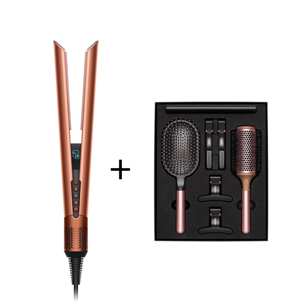 Dysoni uuenduslik sirgendaja ühendab endas juuste sirgendamise ja kuivatamise funktsioonid, pakkudes uudset viisi saavutada loomulikult sirged juuksed ilma liigse kuumuseta. Võimas suunatud õhuvoog koos negatiivsete ioonidega muudab juuste käsitlemise lihtsamaks ja vähendab staatilist elektrit. Seadmel on mitmekülgsed kuumuse ja kiiruse seadistused, mis võimaldavad nii märgade kui ka kuivade juuste soengusse sättimist. Intuitiivne värviekraan ja nutikas õhuvoolu kontroll muudavad kasutamise mugavaks ja efektiivseks. • Sirgenda ja kuivata korraga. Kolm eelseadistatud temperatuuri – 80 °C, 110 °C ja 140 °C – teevad märgadest juustest soengu vaid ühe seadmega. • Viimistle või värskenda kuivi juukseid. Kasuta 120 °C või 140 °C sätet või maksimaalse toime saamiseks võimsusrežiimi. • Kõrglahutuslik värviekraan • Õhuvool 11.9 l/s