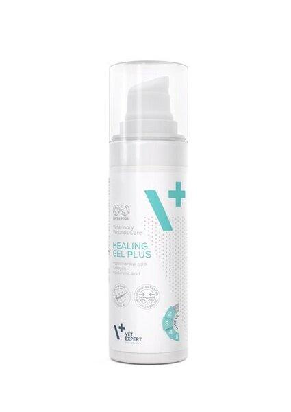 VETEXPERT HAAVAGEEL HEALING PLUS 30ML. Hüdrogeel haavadele, mis toetab haava paranemisprotsesse kassidel ja koertel. Võib kasutada ka armistunud naha pehmendamiseks ja silumiseks. Toote toime põhineb hüpokloorsel happel, mis loob soodsd tingimused normaalseks haava paranemiseks. Koostises on ka hüaluroonhape, mille niisutavad omadused toetavad naha regeneratsiooni. Geel kaitseb haava väliste tegurite eest. Kollageen, mis on keratinotüütide ehitusmäterjal, toetab naha uue...