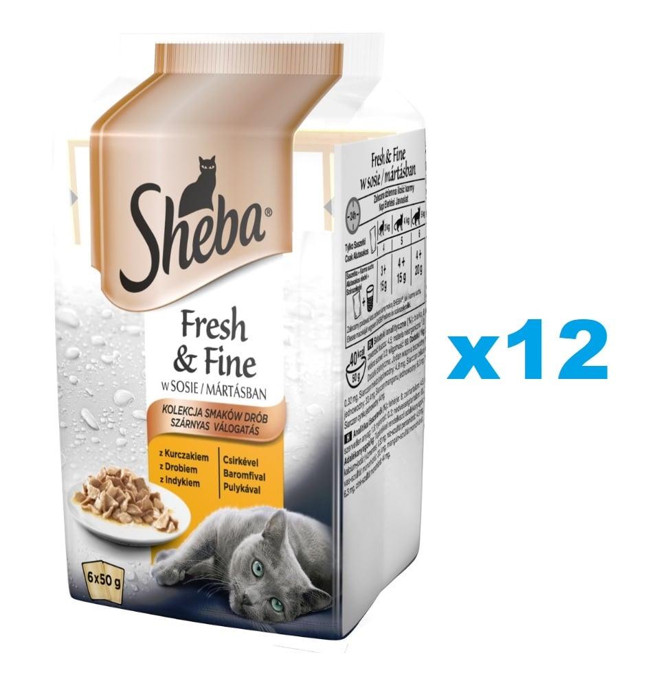 SHEBA Fresh & Fine 72x50g märg täistoit täiskasvanud kassidele kastmes kana, kalkuniga