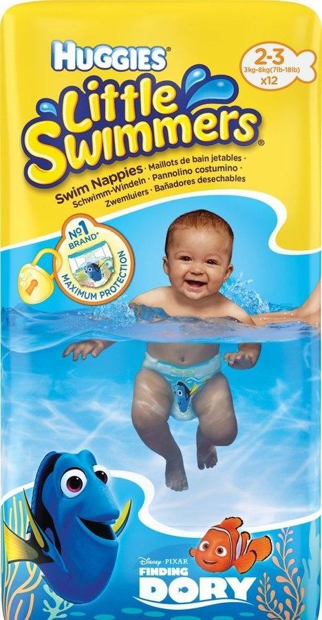 Lastele meeldib vees mängida. Tavalised mähkmed paisuvad nagu rannapallid vee tõttu. Huggies Little Swimmersit kandev beebi alates kolme kuu vanusest saab muretult nautida veemänge rannas, basseinis või veepargis - aluspüksid imavad seest suurepäraselt niiskust, on veekindlad ja püsivad ujudes seest kuivana. Huggies Little Swimmers suurus 2-3 on spetsiaalselt loodud alla 6 kuu vanustele imikutele reguleeritavate krõpsudega, et tagada turvaline istuvus ja hõlbustada vahetamist.Toote omadused:Suurus: 3-8 kgPakendis: 12 tk