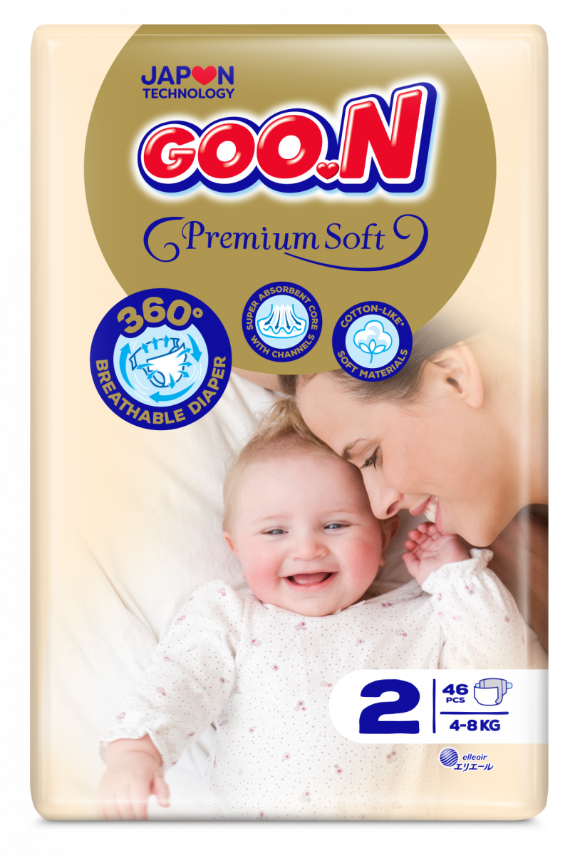 Goo.N Premium Soft - need on ülipehmed ja täiuslikult niiskust imavad mähkmed! Kuiva pinna tagab ülemine reljeefne kiht, mis juhib niiskuse beebi tagumikust eemale ja takistab vedelike väljapääsu.Toote omadused:Soft & Dry välimine kiht hoiab beebi pepu kuivana.Mähkmete struktuuris on kasutatud pehmet, kohevat, E-vitamiini rikast tekstuuri ja ainulaadset 3D-kuju, et minimeerida otsest kokkupuudet nahaga ja vältida nahaärritust.