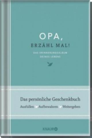Jeder Großvater ist Hüter eines ganz persönlichen Erinnerungsschatzes, den man als Enkelkind gerne bewahren möchte. "Opa, erzähl mal!" enthält alle die Fragen, die man seinem Großvater immer schon mal stellen wollte: Mit was für Spielsachen hast du als Kind gespielt? Wie sah ein normaler Schultag für dich aus? Was sind deine Erinnerungen an deine Großeltern? Wer war deine erste Liebe? Wie hast du Opa kennen gelernt? Welche fünf Dinge sind dir in deinem Leben am wichtigsten? Was würdest du in deinem Leben anders machen, wenn du noch mal die Chance dazu bekämest? - und viele, viele weitere Fragen. "Opa, erzähl mal!" ist ein liebevolles und persönliches Geschenk für jeden Großvater. Ausgefüllt wird es zu einem wertvollen Erinnerungsbuch für die ganze Familie.
