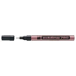 Edding 780 - värvimarker Läikiva tindiga marker on permanentne ja määrdumiskindel. Saab kirjutada siledatele pindadele nagu klaas, metall ja libeda pinnaga paber. Sobib ka tumedatele ja läbipaistvatele pindadele, kuna tint on pindadel läbipaistmatu. Värvilaadne tint on kiiresti kuivav, ilmastiku- ja kulumiskindel. Marker on metallist korpusega ja sellega saab teha 0,8mm paksusega kirja. Tänu peenele plastikust ja metalliga ümbritsetud ümarale otsikule on võimalik teha täpseid jooni, imepeenikest kirja.