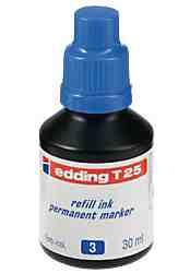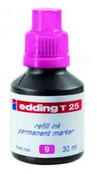 Edding T25 - täitetint permanentsetele markeritele E370, E390, E800, E850, E550, E2000 ja E2200 Täitmiseks keera lahti markeri otsiku poolne osa, tilguta tinti sisse. Soovitatav peale täitmist hoida tund aega kork üleval pool. Pudelis 30ml, saab täita mitu korda. Toodetud Saksamaal