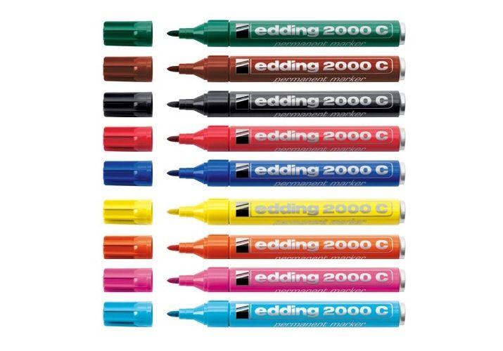 Edding 2000 C - veekindel marker Veekindel marker tugevas alumiiniumist korpuses. Sobib ideaalselt kirjutamiseks peaaegu kõigile materjalidele - näiteks paberile, kartongile, metallile, plastikule ja klaasile. Markeri ümar ots võimaldab tõmmata joont laiusega 1,5-3mm. Toodetud Saksamaal.