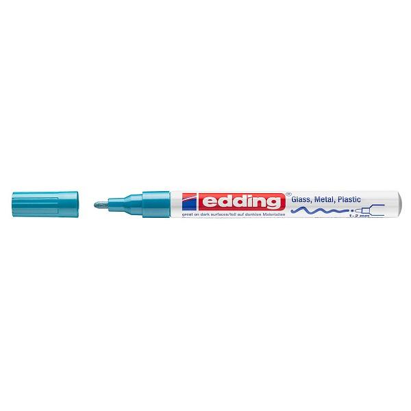 Ümmarguse otsaga permanentne värvimarker Edding 751 - helesinine Läikiva tindiga marker on permanentne ja määrdumiskindel. Sellega saab kirjutada siledatele pindadele nagu klaas, metall, kivi ja libeda pinnaga paber. Sobib ka tumedatele ja läbipaistvatele pindadele, kuna tint on täiesti läbipaistmatu. Värvilaadne tint on kiiresti kuivav ning ilmastiku- ja kulumiskindel. Sobib kasutamiseks nii sise-kui välistingimustes. Kõik värvid on kuumuskindlad kuni 400 kraadini. Kollane, oranž, hõbe ja valge värv on kuumuskindlad 1000 kraadini. Marker on metallist korpusega ja sellega saab teha 1-2mm paksusega kirja. Kasutamiseks markeri otsa pumbata, kuni otsik värvub tindiga. Eddingul on olemas ka 750 seeria - marker on täpselt samade omadustega, ainuke erinevus on paksem joone jämedus (Edding 750 seeria marker teeb 2-4mm joont, Edding 751 seeria marker 1-2mm jämedust joont)