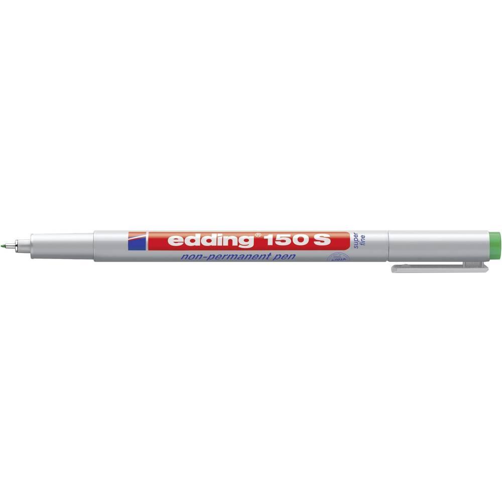 Edding 150 S - mahapühitav kilemarker Marker sobib kirjutamiseks mittepoorsetele plastikust pindadele. Markeeringut saab hiljem korrigeerida või eemaldada niiske lapiga. Metalliga ümbritsetud ümmarguse otsikuga markeri joone jämedus on 0,3mm. Mittepermanentne tint on määrdumise kindel ja kuivab kiiresti. Värvivalikus must, punane, sinine ja roheline. Toodetud Saksamaal