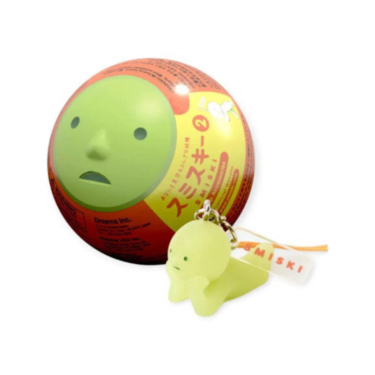 SMISKI Glow Capsule Strap Accessory - Series 2 Take SMISKI Everywhere with SMISKI Strap Accessories!From inside the surreal and adorable capsules shaped like SMISKI's faces, SMISKI with unique personalities emerge and quietly watch over you. From the ever-popular mini figure series "SMISKI Series 2," there are a total of 6 kinds + 1 secret. Attach it to your pouch, smartphone, or other items around you and keep your SMISKI with you at all times. Enjoy everyday moments with SMISKI at any time. Not only the mini-sized SMISKI, but even the capsules are made of a phosphorescent material that absorbs light and emits light when it gets dark, so they glow softly in the dark. 6 kinds + May contain Secret One of these 6 figure is in this package randomly.* Sold blind-boxed in plastic, glow-in-the-dark gachapon capsules.