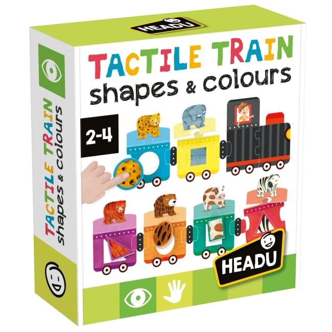 Rõõmsameelne kombatav rong haridusliku süsteemiga, mis aitab väikelastel ära tunda põhilisi kujundeid ja värve ning sõbralike loomade abil ka erinevaid värvitoone.