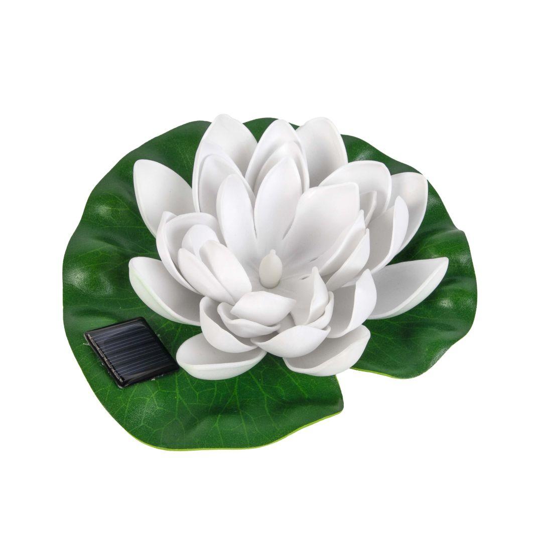 Solar aiavalgusti mõõtmed on 17,5 x 16,5 x 6,5 cm. Valgusti on valmistatud plastikust ja lootose kupli värv on puhas valge. Valgustil on üks sooja valge valgusega LED ja valgusefekt on pidev valgus. Kasutusel on polükristalliline päikesepaneel mõõtmetega 3 x 3 cm. Komplektis on 1 x 2/3 AAA Ni-MH aku.