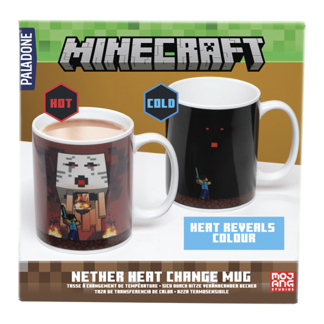 Naudi tee- või kohvipausi Minecraft Nether tassiga. 300 ml must keraamiline tass muudab kuuma joogi lisamisel välimust – nähtavale ilmub Ghast tulekerade keskel. Ei sobi mikrolaineahju ega nõudepesumasinasse. Tõeline must-have Minecrafti fännile.