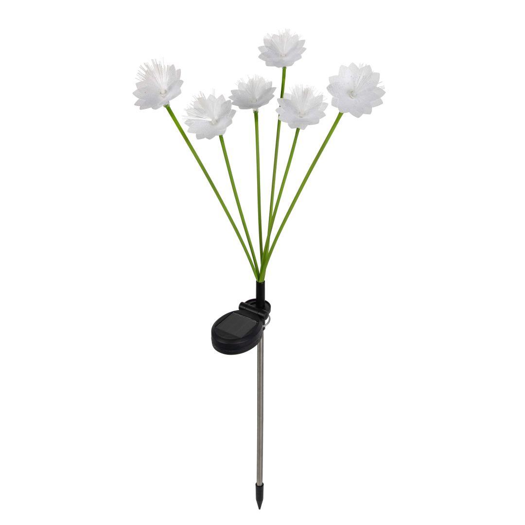 Solar aiavalgusti kõrgus on 72 cm. Lille mõõt on 6 x 3 cm ja komplektis on 6 lille. Valgusti on valmistatud plastikust ja fiiberoptilisest materjalist. Valgustil on 6 sooja valge valgusega LED-i ja valgusefekt on pidev valgus. Lüliti on ON-OFF. Kasutusel on amorfne päikesepaneel. Komplektis on 1 x 1,2 V 200 mAh Ni-MH laetav aku.
