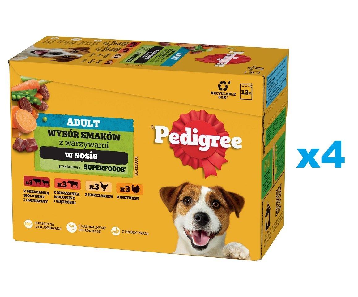 Pedigree Adult Wybór smaków z warzywami w sosie saszetka 48x100g mokra karma dla dorosłych psów z kurczakiem, wołowiną, indykiem, jagnięciną