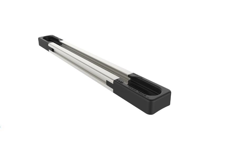 With the RAM Tough-Track™, flat surface mounting possibilities are nearly endless for ATVs, cars, combines, motorboats, tractors, trucks and more. The extruded aluminum version of the RAM Tough-Track can be drilled to any flat surface and is designed for use with #8 screws for easy installation – hardware not included. Made to be a dependable and rugged mounting solution, the anodized aluminum provides a smooth slide across the track and anti-corrosion protection. The RAM-TRACK-EXA-9 features 9” of usable track length (aluminum portion), while the included top loading end caps add about 1.5” in length to each end (3” of additional length). Using the end caps allows for two installation options: either use both top loading end caps to create insertion points on both ends of the track, or use one top loading end cap and close the opposite end with the included flush end cap. The Extruded Aluminum Tough-Track is compatible with the RAM Center Loader and 90 Degree Connector, as well as a wide variety of RAM track bases to attach devices like action cameras, fishing rods, phones and tablets.