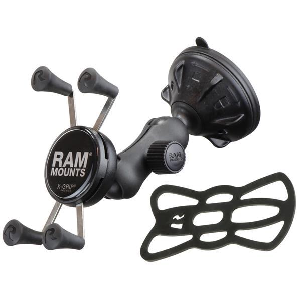 The RAP-SB-224-2-UN7U consists of a snap link, 2.75" diameter twist lock suction cup base and universal spring loaded X-Grip® cradle for cell phones. The suction cup, twist lock base is designed to have a strong hold on glass and non-porous plastic surfaces, including adhesive disks. The spring loaded X-Grip® cradle expands and contracts, allowing for a perfect custom fit of your cell phone. Combine RAM single socket technology for adjustment and the holding power of a twist lock suction cup and you've got a mount ready for the road and whatever vehicle you want to drive today. The X-Grip® includes a device tether recommended for outdoor applications. The cradle is compatible with handheld devices that will fit the dimensions listed below. It is important to verify the dimensions of your handheld device with a case/sleeve/skin when determining the overall size.