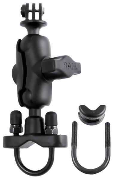 The RAM-B-149Z-A-GOP1 consists of a zinc coated u-bolt base, SHORT size double socket arm and 1" diameter ball with custom GoPro Hero adapter. The mount is designed with a RAM 1" diameter patented rubber ball and socket system that has adjustment points at both ends of the double socket arm; this allowing for almost infinite adjustment and perfect viewing angles. Included in this package is hardware that will accommodate rails from 0.50" to 1.25" in diameter.