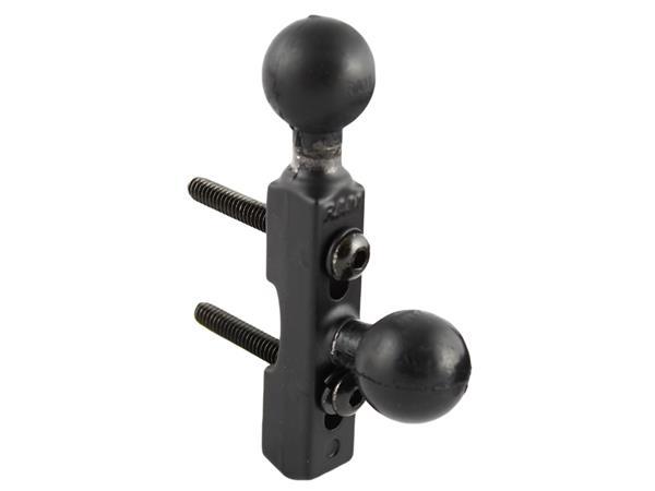 Attach the RAM® double ball base to the brake/clutch handlebar control bracket and the mounting possibilities become endless. Rubber ball and socket technology allows for near-infinite adjustability and ideal viewing angles, while providing shock and vibration damping to help extend the life of your favorite devices. The brake/clutch double ball base fits the control clamps on your motorcycle with the included 40mm x 6mm stainless steel hardware. The two B size 1" rubber balls are permanently connected.