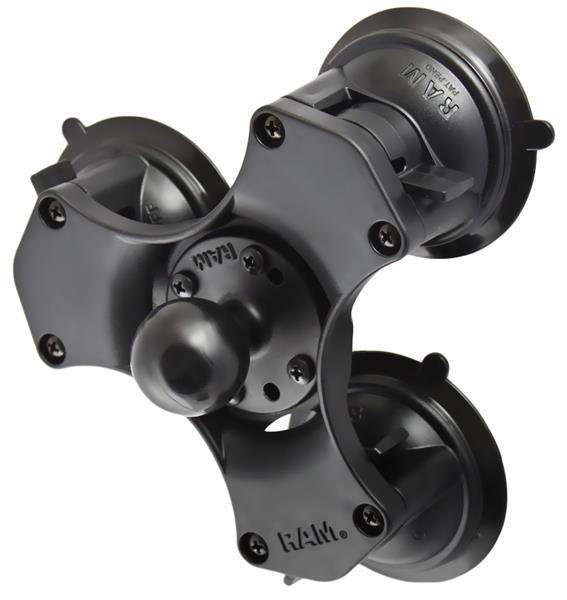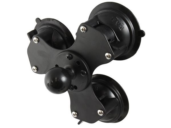The RAM-224-3U consists of a triple suction cup base with 1.5" diameter ball. The RAM-224-3U is designed to have an extra strong hold on any smooth non-porous surface, but for best result, mount the RAM-224-3U on a glass or non-porous plastic surface.