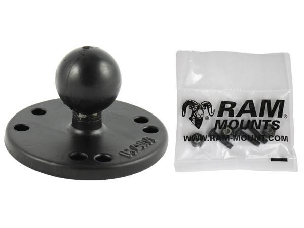 OVERVIEWThe RAM-B-202-G4U consists of a 1" diameter rubber ball connected to a flat 2.5" diameter base. This mount has pre-drilled holes, including the universal AMPS hole pattern. Included are 3x (#8-32 x 5/8” PH PD Mach Screws) and 3x (#8-32 SS Nylock Nuts) that will connect the RAM-202-G4U to the bottom of the Garmin echo™ and Striker™ 4 Series.