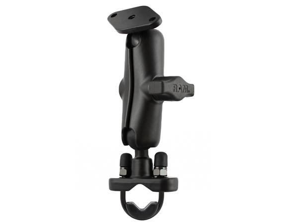 The RAM-B-174U consists of a 1" diameter rubber ball, double socket arm, hardware for mounting to both brake/clutch reservoirs and rails that are 0.5" to 1.25" in diameter. The mounting hardware for brake/clutch reservoirs include both standard and metric mounting bolts. Designed into the mount is a 1" diameter patented rubber ball and socket system with adjustment points at both ends of the socket arm; this with a twist of the arm knob allows you to move the mount to your optimum viewing position.