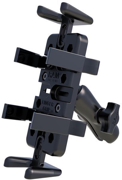 The RAM-HOL-UN7-400U consists of the small Tough-Claw™ base and universal X-Grip® cradle. The X-Grip® cradle has a clean and clever four leg design that sports great holding power without hiding your smart-phone behind foam pads and plastic. The X-Grip® cradle expands and contracts for perfect fit of most smart phones. This mount rotates 360 degrees. The X-Grip® includes a device tether recommended for outdoor applications. The cradle is compatible with handheld devices that will fit the dimensions listed below. It is important to verify the dimensions of your handheld device with a case/sleeve/skin when determining the overall size.