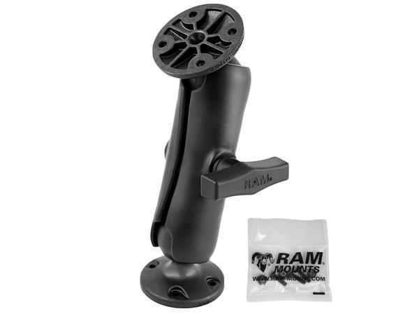 The RAP-101U-G4 consists of a 2.5" diameter round base with the universal AMPS hole pattern, double socket arm and round adapter base that attaches directly to the back of the Garmin echo™. Designed into the mount is a 1.5" diameter patented rubber ball and socket system with adjustment points at both socket ends of the arm; this with RAM's rubber ball and socket technology allows for almost infinite adjustment and perfect viewing angles. Included is hardware that is used to attach the Garmin echo™ to the RAM Mount.