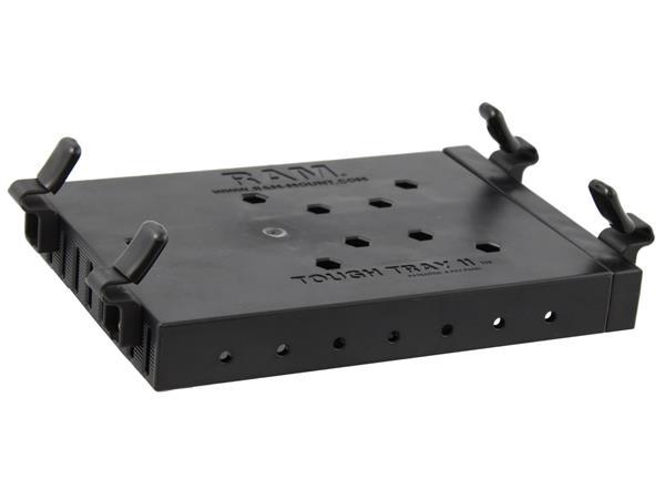 Well thought out and compact designs are common place at RAM and our new RAM Tough-Tray™ II is no exception. Spring loaded to create just the right amount of holding force, most tablets, UMPC’s, and compact laptops can be made safe and secure while on the go. Simple to install and adjust retaining arms insure a perfect fit without interfering with ports or functions. Also, if a compact laptop is in place, these retaining arms hold firm with the screen up or down. Ideally suited to a multitude of applications, and easily attached to hundreds of mounting systems for cars, boats, planes, and more, compact devices just work better in the universal tablet holder from RAM.