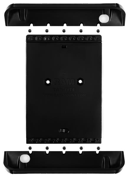 Get the most out of your tablet with the RAM® Tab-Tite™ spring loaded, quick release cradle. With interchangeable cup ends, you can fit the cradle to your tablet for a near custom fit. This spring loaded design makes it easy to load and unload your tablet, along with keeping it secure while on the go. Cup ends are designed to optimize the functionality of your tablet, allowing access to audio jacks, USB, power, and other ports, your tablet can be used just as it was intended. Perfect for stationary or on the go applications, this RAM® product is just what you need to get the most out of your tablet. The included back plate is interchangeable with various size support cups, making it compatible with numerous tablet models. When purchasing a new tablet, new detachable support cups are the only components needed for purchase. Included is a set of four nuts and bolts to connect the cradle to any RAM® components or mounts that contain the universal AMPs hole pattern. For off-road environments and extreme use, we recommended the use of a tether to assist in retaining your device. The RAM® Tab-Tite™ cradle is compatible with any tablet that will fit the dimensions listed below. It is important to verify the dimensions of your tablet when determining the overall size.