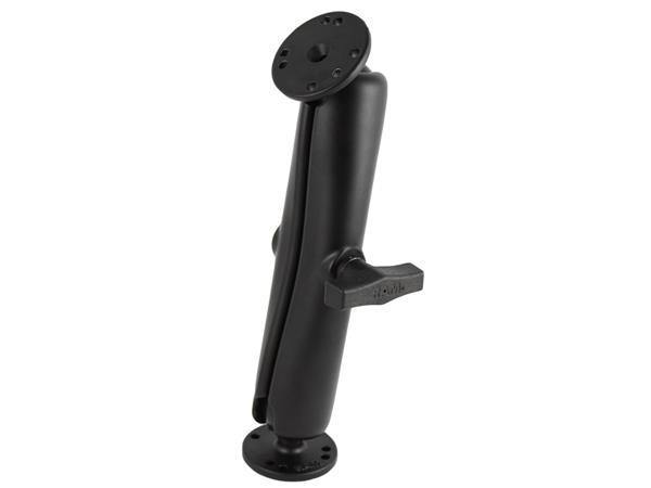 The RAM-101U-D consists of a long double socket arm and two 2.5" diameter round bases with the universal AMPS hole pattern. Designed into the mount is a 1.5" diameter patented rubber ball and socket system with adjustment points at both socket ends of the arm. Rubber ball and socket technology allows for almost infinite adjustment and perfect viewing angles. High quality materials insure your device is safe, secure, and within easy reach. RAM’s patented design also dampens shock and vibration helping to extend the life of your device.
