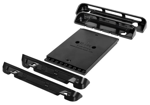 The RAM-HOL-TAB19U consists of a spring loaded back plate and custom support cups for the Panasonic Toughpad FZ-G1. The spring loaded design makes it easy to load and unload your tablet, along with keeping it secure while on the go. Interchangeable cup ends are designed to optimize the functionality of your tablet, allowing access to audio jacks, usb, power, and other ports, your tablet can be used just as it was intended. Perfect for stationary or on the go applications, the RAM-HOL-TAB19U is just what you need to get the most out of your tablet. Included is a set of four nuts and bolts to connect the cradle to any RAM components or mounts that contain the universal AMPs hole pattern. For off-road environments and extreme use, we recommended the use of a tether to assist in retaining your device. The Tab-Tite™ cradle is compatible with any tablet that will fit the dimensions listed below. It is important to verify the dimensions of your tablet when determining the overall size.