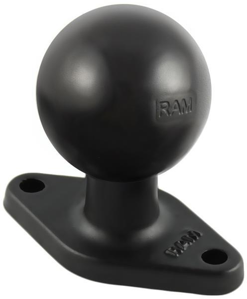 The RAM-238U ball base consists of a 1.5" C size rubber ball connected to a 2.43" x 1.31" diamond plate. The diamond plate features two holes that measure 1.912" from center to center, matching the industry-standard AMPS hole pattern. This diamond ball base is compatible with a wide variety of RAM® device holders and cradles.
