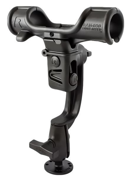 The RAP-370-RBU consists of the RAM ROD® Light-Speed™ fishing rod holder, RAM ROD® Revolution ratchet arm with single open socket and 2.5" diameter round base that contains the universal AMPS hole pattern. Offering the patented RAM rubber ball, socket and ratcheting feature, you can rotate the rod holder 360 degrees, while tilting the rod holder forward and back for the optimum fishing angle. . The RAM ROD® Light-Speed™ is another innovative product in RAM’s long list of high quality, industry leading fishing products. Ideally suited for spinning reels and bait casting reels, the Light-Speed rod holder provides smooth action when inserting and removing the fishing rod, yet holds firm in rough water or while trolling. The spring loaded design enables rapid removal of the rod and reel when a fish is on, and offers easy placement of the rod in the rod holder.