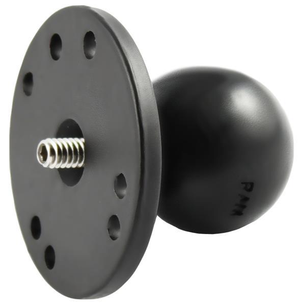 The RAM-202AU consists of a 1.5" rubber ball that is connected to a 2.5" diameter round base. Also, included is a 1/4"-20 threaded steel stud, centered, the round base provides support and stability for cameras that rest on top of it. The male 1/4"-20 threaded steel stud will connect to any standard female thread found on camcorders and digital cameras.