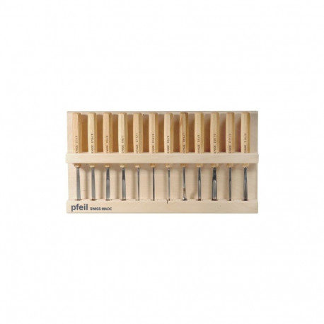 12 pcs of carving chisel set Pfeil D12er, with toolstand GTIN: 7640167025275 Käsitööriistad -> Peitlid | 285,60 € | Poodi | ||
