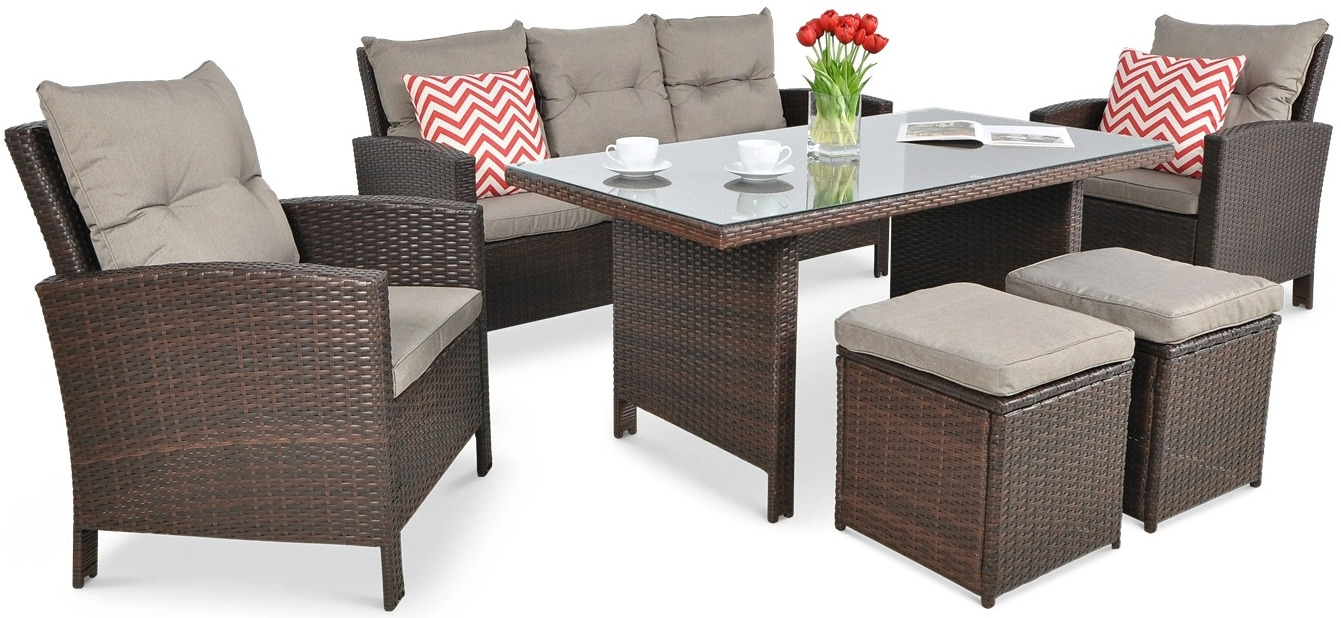 Aiamööbli komplekt Ibiza, pruun, 7 istekohta GTIN: 4902706224085 Mööblikomplektid | 979,00 € | Poodi | ||