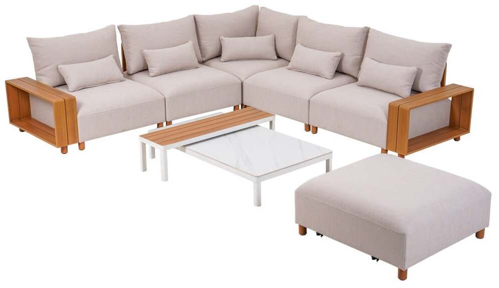 Aiamööbli komplekt Home4you Pacific, liiva, 7 istekohta GTIN: 474124310535 Mööblikomplektid | 1829,00 € | Poodi | ||