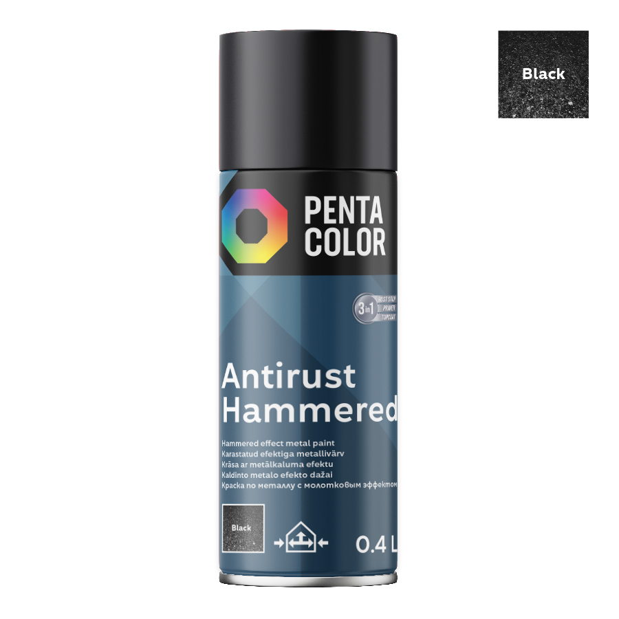 Aerosoolvärv Pentacolor Hammered Effect, dekoratiivne, must, 0.4 l GTIN: 2100513254889 Aerosoolvärvid | 6,99 € | Poodi | ||