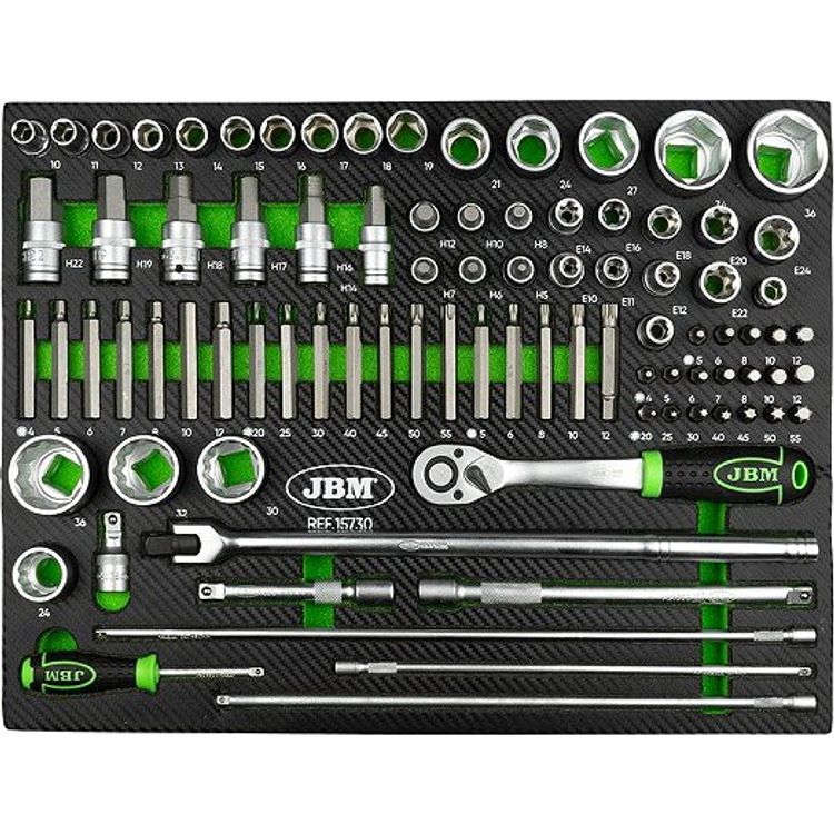 109-Os. 1/2"+1/4" Padrunite+Otsikute Komplekt 10-36Mm. Pu-Paneelis Jbm Tootekood: 15730 GTIN: 8435034157307 | 271,13 € | Poodi | ||