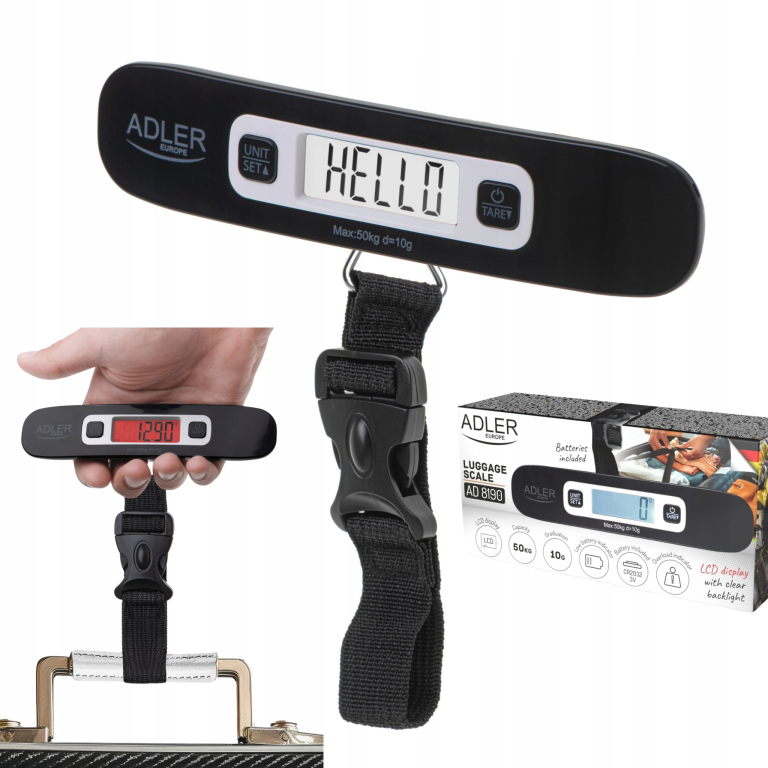 Adler Travel Luggage Scale AD 8190 - Maximum weight (capacity) 50 kg - Accuracy 10 g - Black Tootekood: AD 8190 Weighing scales | 5,00 € | Poodi | ||