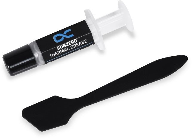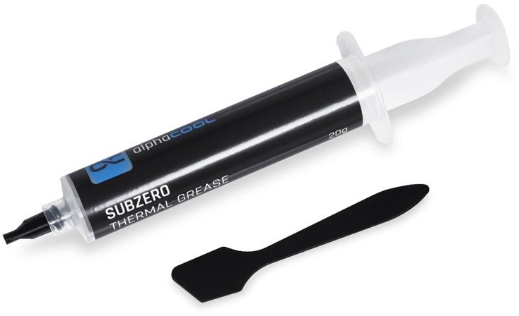 Alphacool Subzero High-Performance Thermal Paste 16W/mK - 20g Tootekood: 13009 GTIN: 4250197130097 Thermal Pastes The Alphacool Subzero Thermal Grease is intended for all users who want to achieve optimum performance with their system. This electrically non-conductive thermal paste suitable for high contact pressures is an excellent choice when performance and ease of application are required.ApplicationSubzero Thermal Grease can be optimally applied due to its high viscosity. For perfect application of the thermal paste, a plastic spatula (included in delivery) or a comparable tool should be used.PropertiesAlphacool's Subzero Thermal Grease has a high thermal conductivity, making it one of the best performing thermal pastes on the market. Only thermal pastes made from liquid metal offer better thermal conductivity. Subzero Thermal Grease is delivered in an applicator with a screw cap. The amount of thermal grease is sufficient for several applications and can be stored in the applicator to protect it from drying out. A plastic spatula is included for perfect application of the thermal paste. Subzero Thermal Grease is non-conductive and non-caustic. If a small amount of paste is spilled during application, damage to the hardware is highly unlikely. Technical dataColor AppearancegrayViscosity (mPa. s)3,000,000Specific Gravity (g/cm3)2,7Thermal Resistance (Degree Celcius*cm2/w) 60Psi0,05Dielectric Constant14,5 at 1MHzVolatile matter (%), 120 Degree Celcius @96hrs0,18Out Gasing (%), 200 Degree Celcius @96hrs0,01Temperature Stability (Degree Celcius)-50 ~ 200Shelf Life2 yearsProduct Featureseasy to work with, non-caustic, anti-oxidation, not easily solidifying | 34,40 € | Poodi | ||