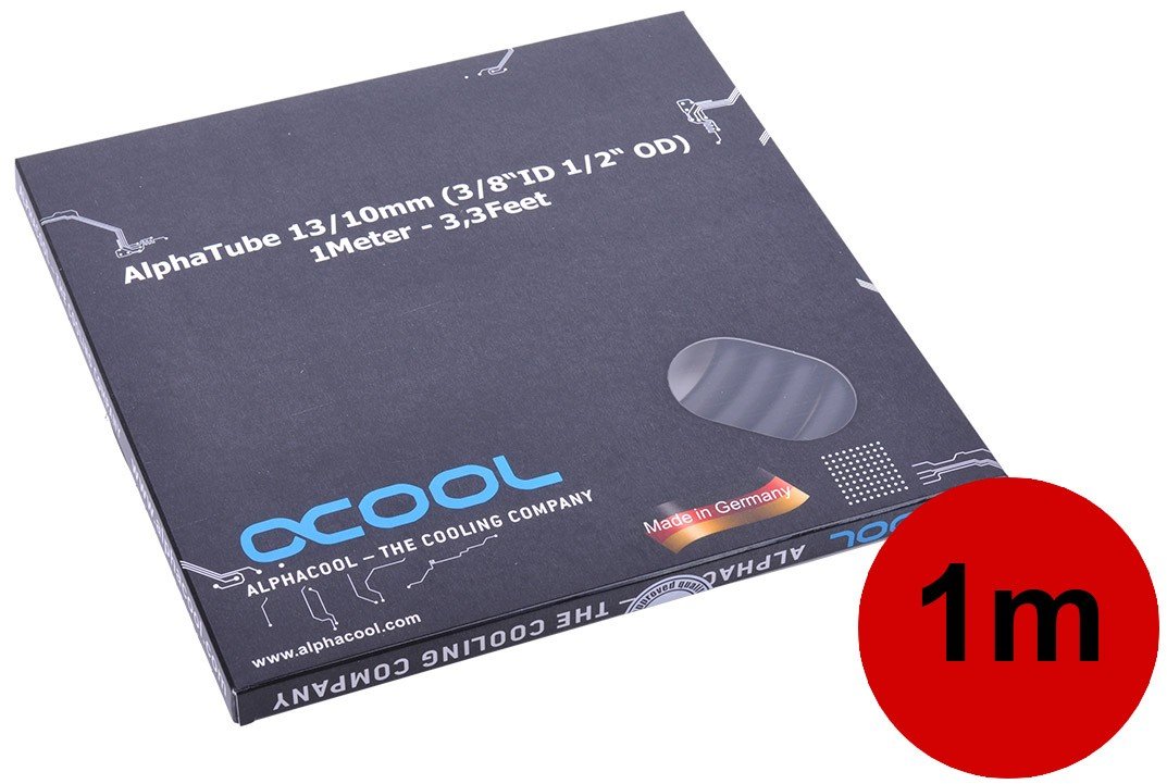 Alphacool tubing AlphaTube HF 13/10 (3/8"ID) - UV black 3m (9,8ft) Retailbox Tootekood: 18417 GTIN: 4250197184175 Tubing for water cooling Deep, intense colors, pleasant handling and easy installation were the goals when developing this tubing generation. The result is a great choice of sizes and colors such as red, green, blue or black.When designing these tubes, one goal was to make colored coolant and hence the strain from coloring particles on the cooling loop obsolete. With these tubes the color comes from the tubes themselves.Besides color, the installation and kinking properties are always an important factor when choosing tubing. Tight bending radiuses and easy handling in tricky situations were also taken into consideration during development. Hence the plastic mixture was developed to perfection and we have created tubing which manages to combine usually opposing properties to please both beginners and advanced users. Manufacturing in Germany promises permanently high quality. The manufacturing with years of experience ensures the best product all of the time!Technical specifications:Material: PVCColor: UV blackInner diameter: 10mm, 3/8“Outer diameter: 13mm, ½“Wall thickness: 1,5mm, 1/15“Extent of delivery:1x Alphacool Schlauch AlphaTube HF 13/10 (3/8"ID) - UV Schwarz 3m (9,8ft) Retailbox | 14,50 € | Poodi | ||