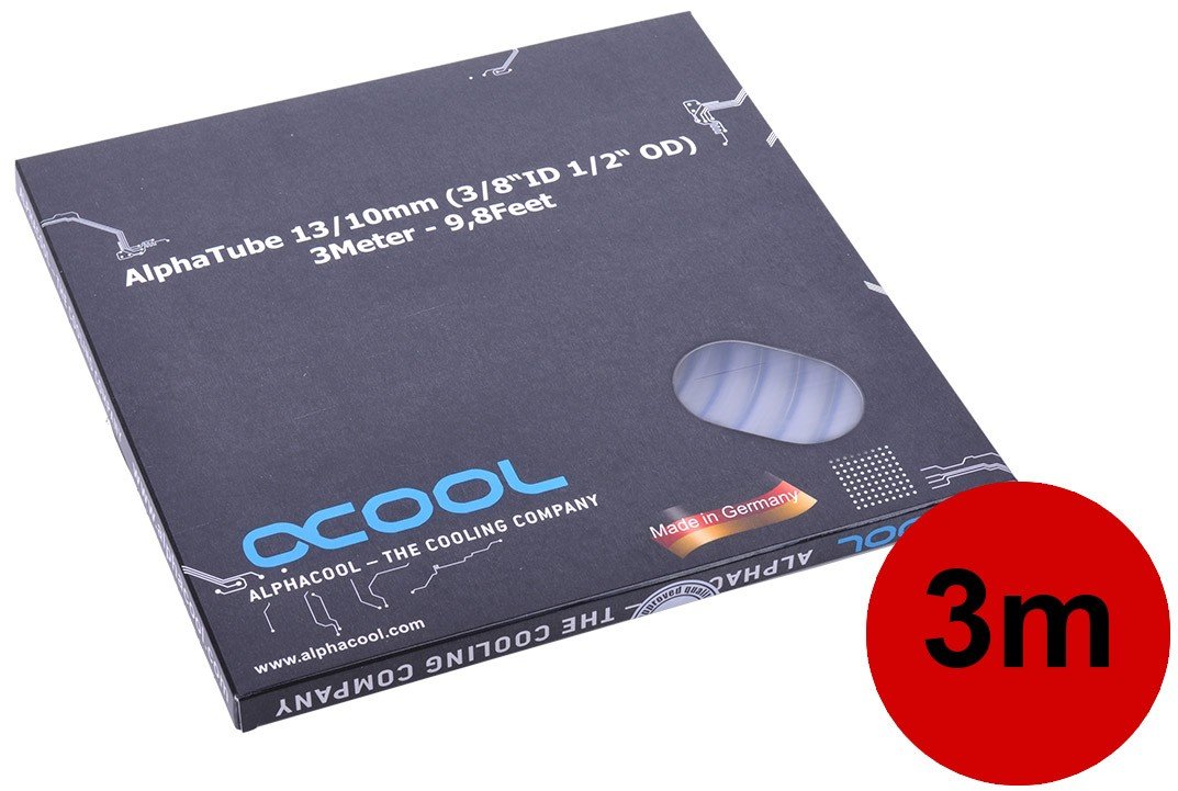 Alphacool tubing AlphaTube HF 13/10 (3/8"ID) - clear 3m (9,8ft) Retailbox Tootekood: 18413 GTIN: 4250197184137 Tubing for water cooling Deep, intense colors, pleasant handling and easy installation were the goals when developing this tubing generation. The result is a great choice of sizes and colors such as red, green, blue or black. When designing these tubes, one goal was to make colored coolant and hence the strain from coloring particles on the cooling loop obsolete. With these tubes the color comes from the tubes themselves. Besides color, the installation and kinking properties are always an important factor when choosing tubing. Tight bending radiuses and easy handling in tricky situations were also taken into consideration during development. Hence the plastic mixture was developed to perfection and we have created tubing which manages to combine usually opposing properties to please both beginners and advanced users. Technical specifications Material: PVC Color: Transparent Inner diameter: 10mm, 3/8“ Outer diameter: 13mm, ½“ Wall thickness: 1,5mm, 1/15“ Extent of delivery 1x Alphacool Schlauch AlphaTube HF 13/10 (3/8"ID) - Klar 3m (9,8ft) Retailbox | 13,55 € | Poodi | ||