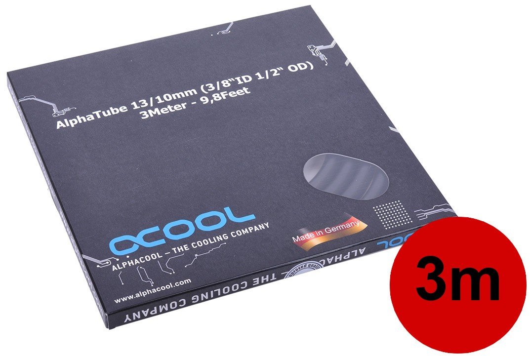 Alphacool tubing AlphaTube HF 16/10 (3/8"ID) - UV black 3m (9,8ft) Retailbox Tootekood: 17529 GTIN: 4250197175296 Tubing for water cooling A water cooling system consists of many different elements. Pumps, radiators, cooling blocks, reservoirs and often other com-ponents. In order to build up a functional water cooling system, these components must of course be connected to each other. The easiest way to do this is use tubung. Here the Alphacool AlphaTube HF tubing is the best choice.OpticsIn different vivid colors, clear and also UV-active. The AlphaTube HF tube offers a large selection of different colours and styles making it easy to find the hose that best suits your taste.ApplicationThe AlphaTube HF tubing has the perfect flexibility to be easily installed. It is flexible enough to be laid without effort, butat the same time rigid enough that it will not kink easily, even with tighter bending radii.Available in different sizes.We offer the AlphaTube HF hose in all common sizes.Technical data:Length: 3 mTube size: OD 13 mm / ID 10 mmMaterial: PVCHardness grade: 65-70 A-ShoreWorking temperature: -10 - 80°CBurst pressure: 18 barWorking pressure: 3 bar Download data sheet PDF: | 17,45 € | Poodi | ||