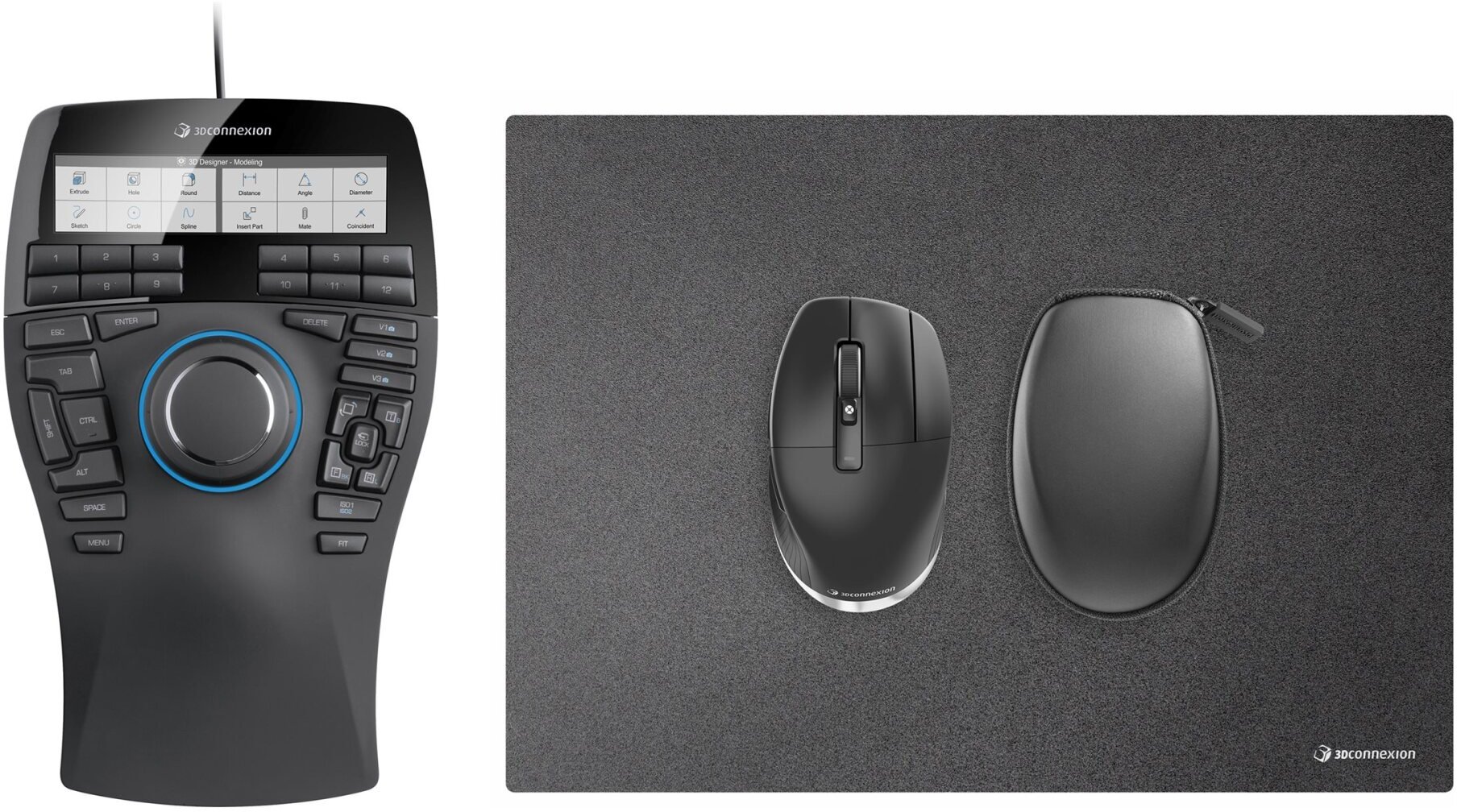 3Dconnexion SpaceMouse Enterprise, CadMouse Pro Wireless and CadMouse Pad create a synergistic ecosystem that simply cannot be recreated using a regular mouse and keyboard. SpaceMouse Enterprise smoothly positions objects and views, while CadMouse Pro Wireless selects and creates with ease and agility. It is the most natural and ergonomic workstyle for CAD professionals, reducing finger movement by 28.6% per hour and improving both body and hand posture.SpaceMouse Enterprise introduces a new level of high-performance features that give you an unprecedented real-time understanding of engineering design. The comprehensive array of large, keyboard like buttons, including a significantly expanded set of QuickView Keys and keyboard modifiers, means less hand travel to and from the keyboard than ever before.CadMouse Pro Wireless is the full-size mouse designed specifically for the modern CAD professional. Offering superior ergonomics, a dedicated middle mouse button, high-resolution optical sensor, up to three-month use between charges and 50 million clicks-worth of durability for the daily use CAD specialist, CadMouse Pro Wireless is the mainstay of any CAD toolkit.The 3Dconnexion CadMouse Pad provides the ideal balance between speed and control thanks to its high-quality micro-textured coating. Tailor made for the 3Dconnexion CadMouse, it enables effortless, precise mouse movement thanks to a perfect equilibrium between static and kinetic friction. That means CadMouse moves exactly how you mean it to - every time.