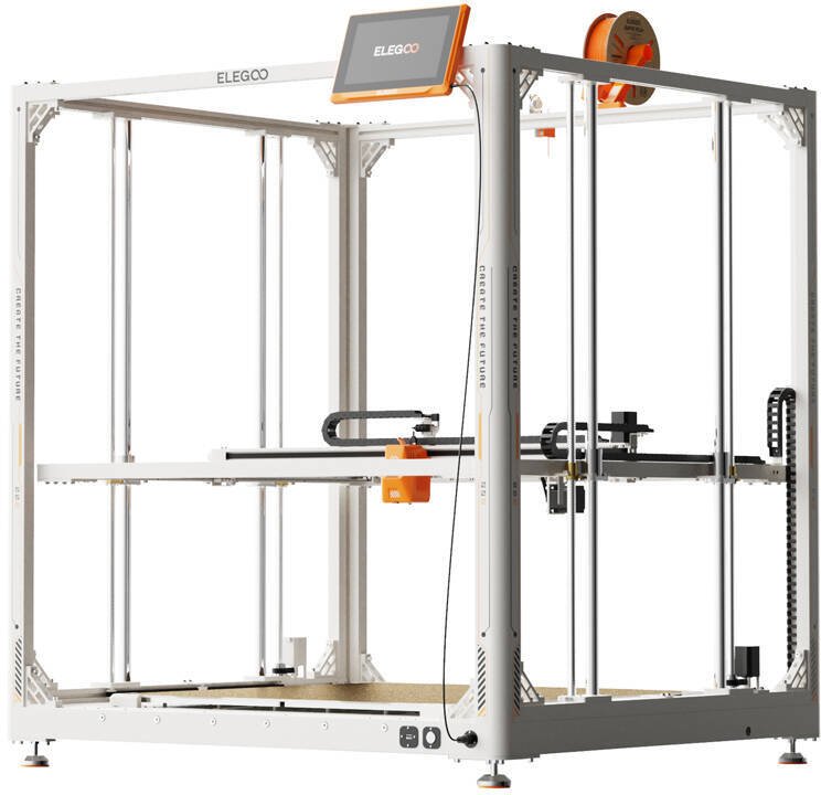 ELEGOO OrangeStorm Giga 3D PrinterELEGOO OrangeStorm Giga is a giant industrial-grade 3D printer designed for extremely large projects. With its huge working space and advanced features, this device is ideal for professionals who need a reliable tool for producing large-format models. The OrangeStorm Giga opens up entirely new possibilities in the fields of prototyping, architecture, industrial design, and manufacturing, allowing the creation of parts that would require partitioning into smaller pieces in other devices.Maximum creative possibilitiesIf you need to print on a large scale, the OrangeStorm Giga is the perfect choice. With a workspace of 800 x 800 x 1000 mm, it allows you to create full-size models and saves you the time of cutting your designs into smaller pieces. Just load the model and let the printer do the work - a simpler and more efficient solution for large projects.Fast and efficient platform heatingThe OrangeStorm Giga heating platform consists of four independent PEI tiles measuring 410 x 410 mm each. The total surface area can be uniformly heated to 100°C in just 17 minutes, allowing for a faster start to printing and ensuring better adhesion of models to the platform. The ability to automatically identify and heat only the active part of the platform also allows for significant energy savings.Extreme printing speedThe OrangeStorm Giga is equipped with a powerful 64-bit quad-core processor that provides the stability and processing power required to realize high-speed printing. With a maximum print speed of 300 mm/sec (with a recommended speed of 150 mm/sec), the OrangeStorm Giga is one of the fastest printers in its class, allowing you to significantly reduce the turnaround time for large projects.Even more capabilitiesThe OrangeStorm Giga supports printing using four nozzles simultaneously. You can print four copies of the same model using different colors of filament or the same material in one cycle. This functionality allows you to create multi-colored models and increases production flexibility, which is especially useful in commercial and industrial applications.Efficient coolingThe OrangeStorm Giga printer is equipped with powerful cooling fans on both sides of the chassis to increase stability and printing precision. Intelligent control of the fans allows them to be turned off when printing is complete, reducing power consumption and noise while extending the life of the device.Reliable design and high-quality componentsThe OrangeStorm Giga is a 3D printer with a robust design with linear guides on the X and Y axes, increasing printing stability and head movement precision. The Z-axis is equipped with an advanced guiding mechanism that ensures smooth and precise movement. In addition, a sturdy steel base and non-slip feet are used to ensure the device's stability during operation.Advanced print head with automatic calibrationThe print head on the OrangeStorm Giga can reach a temperature of 300°C, allowing it to print in a variety of materials such as PLA, PETG, TPU and Nylon. The chrome-zirconium copper nozzle and 60W ceramic heater ensure even and precise material flow, while the PID calibration function and automatic resonance compensation further enhance print quality and stability.IncludedOrangeStorm Giga 3D printerPrint headScreenLeveling plate × 2pcsSpool holder armSpool holderFilament break detector × 2pcsZ axis track cable latchZ axis end stop × 2pcsAseemba filament guideSpool holder module (5kg)Power cableLeveling cardLubricantProofile corner bracket × 8 piecesToolsFastenersUser manual ManufacturerELEGOOModel:OrangeStorm GigaPrinting Technology:FDM (Fused Deposition Modeling).Workspace:800 x 800 x 1000 mm³Working platform:820 x 820 mm (4 independent 410 x 410 mm PEI plates)Print speed:Up to 300 mm/sec.Nozzle temperature:Max 300°CHeating platform temperature:Max 100°CCompatible materials:PLA, PETG, TPU, NylonNet weight:104 kgGross weight:145 kgPower supply:100-120V / 220-240VFile transfer methods:USB, LAN, WiFiSupported file formats:STL, OBJInterface languages:English, French, German, Russian, Italian, Spanish, Japanese, ChineseMachine dimensions:1224 x 1164 x 1425 mmPackage dimensions:1350 x 1215 x 420 mm (bottom parts and XY axis components); 1350 x 1215 x 350 mm (Z axis components).Maximum machine working area:1224 x 1520 x 1570 mm