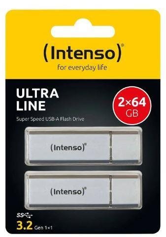 Intenso Ultra Line USB stick 64 GB Silver 3531494 USB 3.2 (Gen 1) ULTRA LINE You make no compromises. Ultra classy. Ultra fast. Discover the maximum. The Ultra Line with USB 3.2 Gen 1×1 interface achieves transfer speeds up to 10 times faster than USB 2.0 sticks. Lightning-fast data transfer rates of up to 70 MB/s define your new standard. Whether PC, laptop, TV, car audio, speakers and more – this USB stick stands for maximum compatibility. Its hexagonal, deliberately angular design underlines its robustness and uncompromising nature. Transport it securely on your keyring using the keyring holder. This lightweight device weighing just 6 grams is complemented by its high-quality, elegant aluminium housing. Ultra!