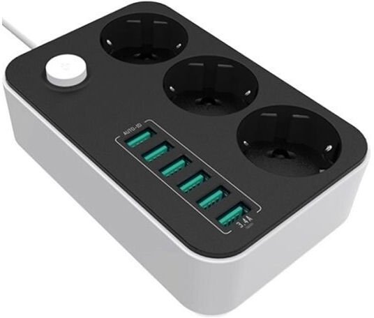 Integrated temperature sensor; Integrated humidity sensor Compact extension cable, with three mains outlets 220V and 6 USB ports 5V. With it, you can connect not only electrical appliances, but also simultaneously charge up to 6 mobile devices: smartphones, tablets, external batteries and many other devices that support charging from a USB port. Three network euro-sockets with earthing and overvoltage protection