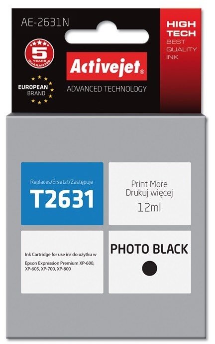 Activejet AE-2631N Ink (replacement for Epson 26 T2631; Supreme; 12 ml; black)